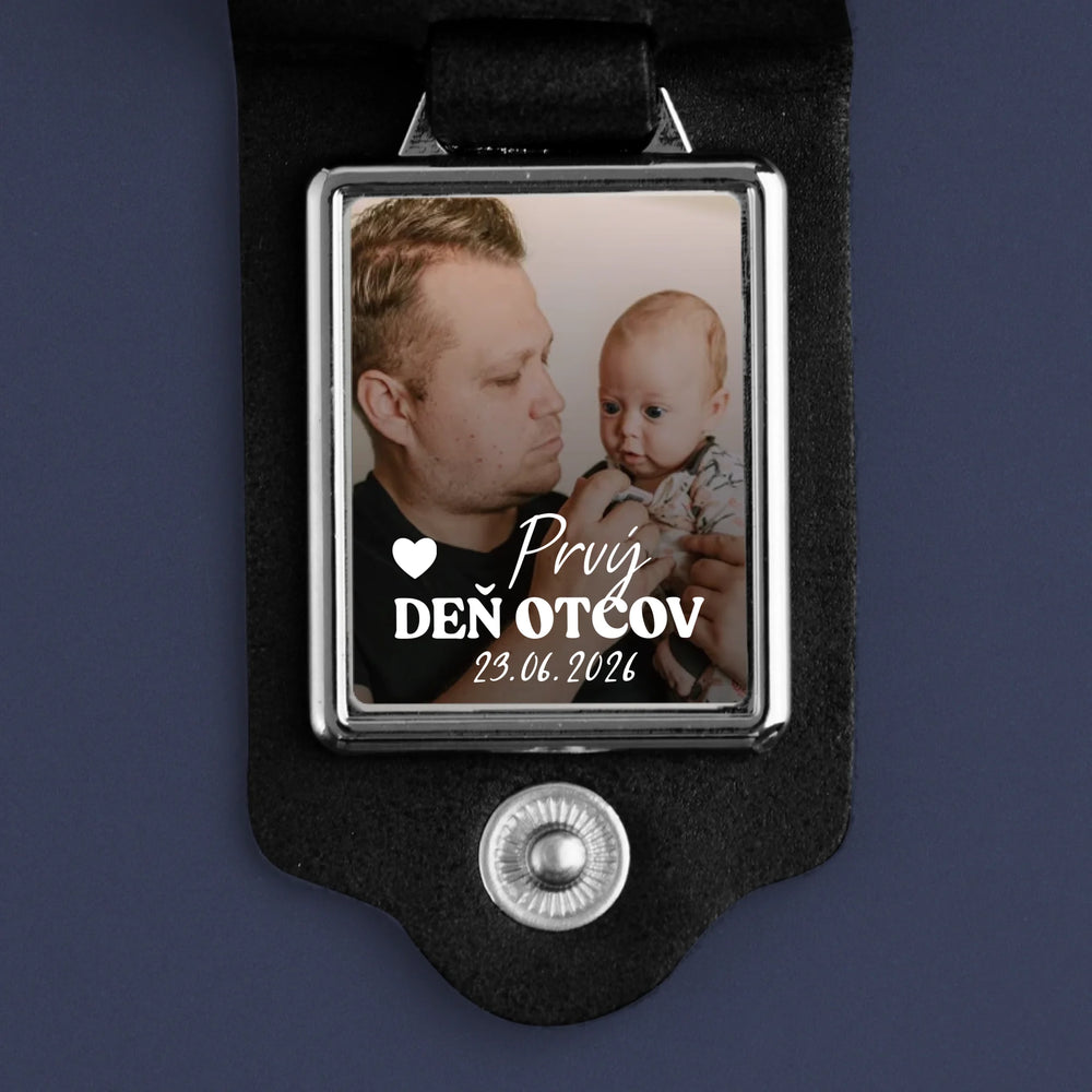 Foto und Unterschrift: Erster Vatertag – Leder-Schlüsselanhänger mit Foto | SK - Kožená kľúčenka s fotografiou